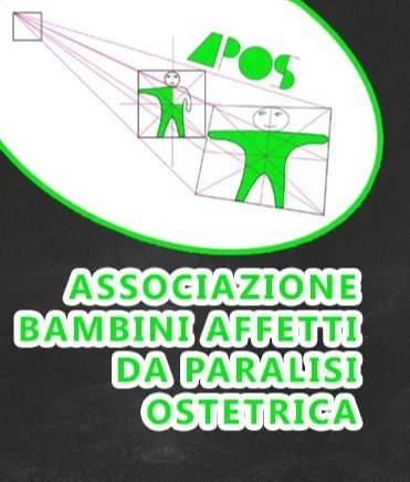Logo and name of "Associazione Bambini Affetti da Paralisi Ostetrica" with abstract illustrations.